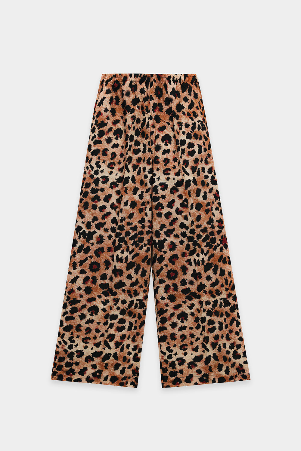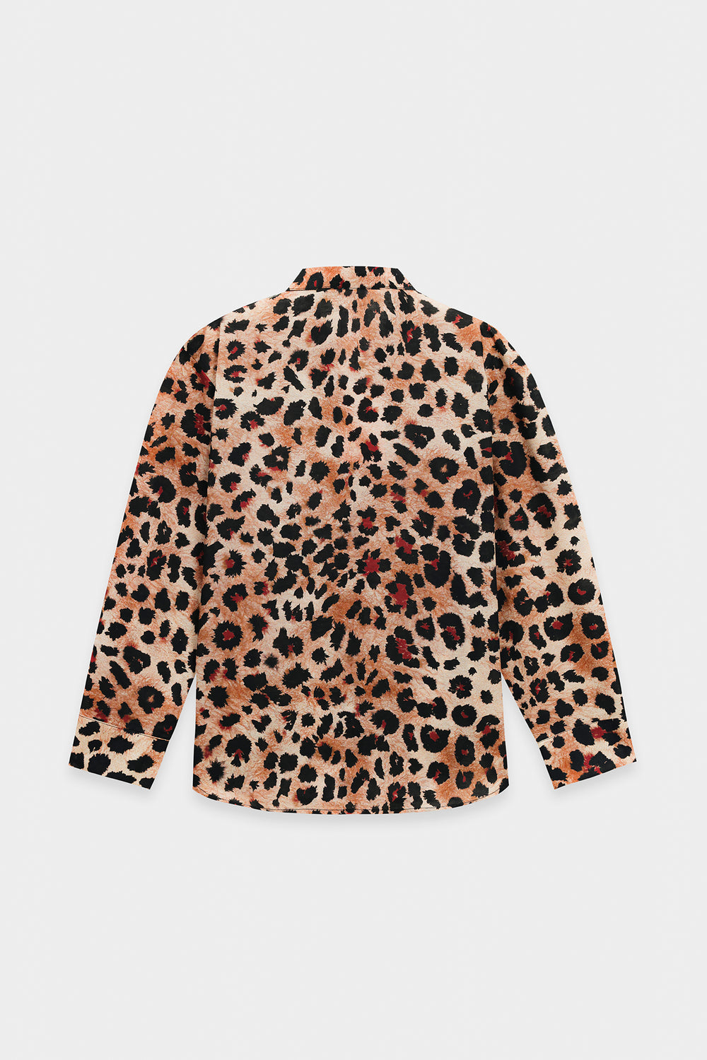 Command attention in this tiger-printed co-ord set. This two-piece outfit features a bold tiger stripe pattern in black and tan, making it a true statement piece. The set includes a button-up shirt with full sleeves and a ban neck collar, paired with comfortable wide-leg trousers. Designed for a fashionable and confident look, this ensemble is perfect for making a memorable impression at any event.