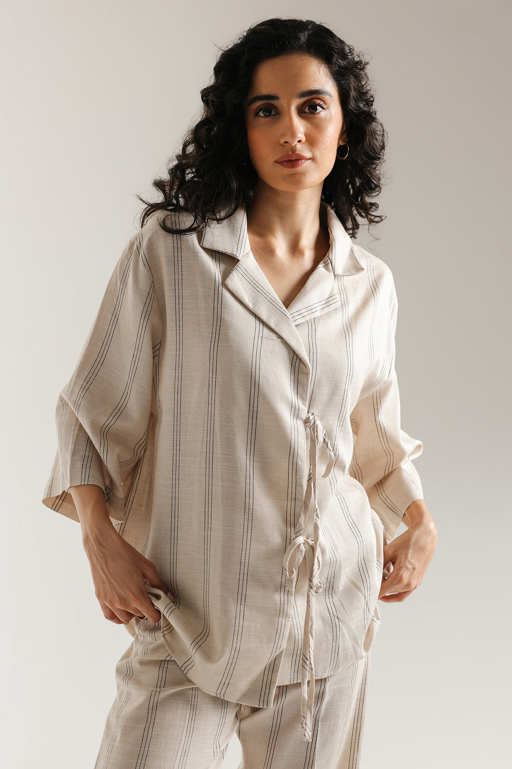 Experience the comfort of classic style with this elegant two-piece suit. This solid antique white suit features a regular shirt with a cuban collar and a lace-up detail at the front. The straight-cut trousers complete the look, creating a cohesive and timeless silhouette. Perfect for any occasion, this suit offers a versatile and sophisticated option for your little one's wardrobe.