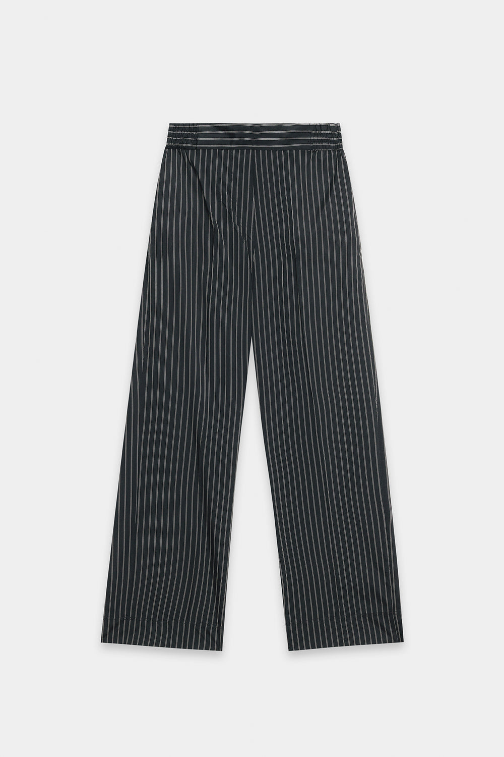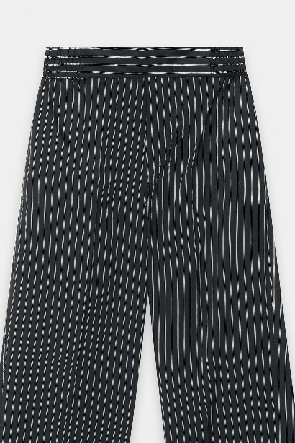 Command attention with the bold sophistication of this striped suit. This contemporary co-ord set features a relaxed-fit button-down shirt and matching trouser, both crafted in a striking black fabric with a subtle yet crisp white pinstripe pattern. The shirt maintains a classic collar and full-length sleeves in an easy, slightly relaxed silhouette, while the trouser offer a comfortable, high-waisted fit. This two-piece set is the epitome of modern tailoring, offering a timeless, monochromatic look with a hint of power dressing.