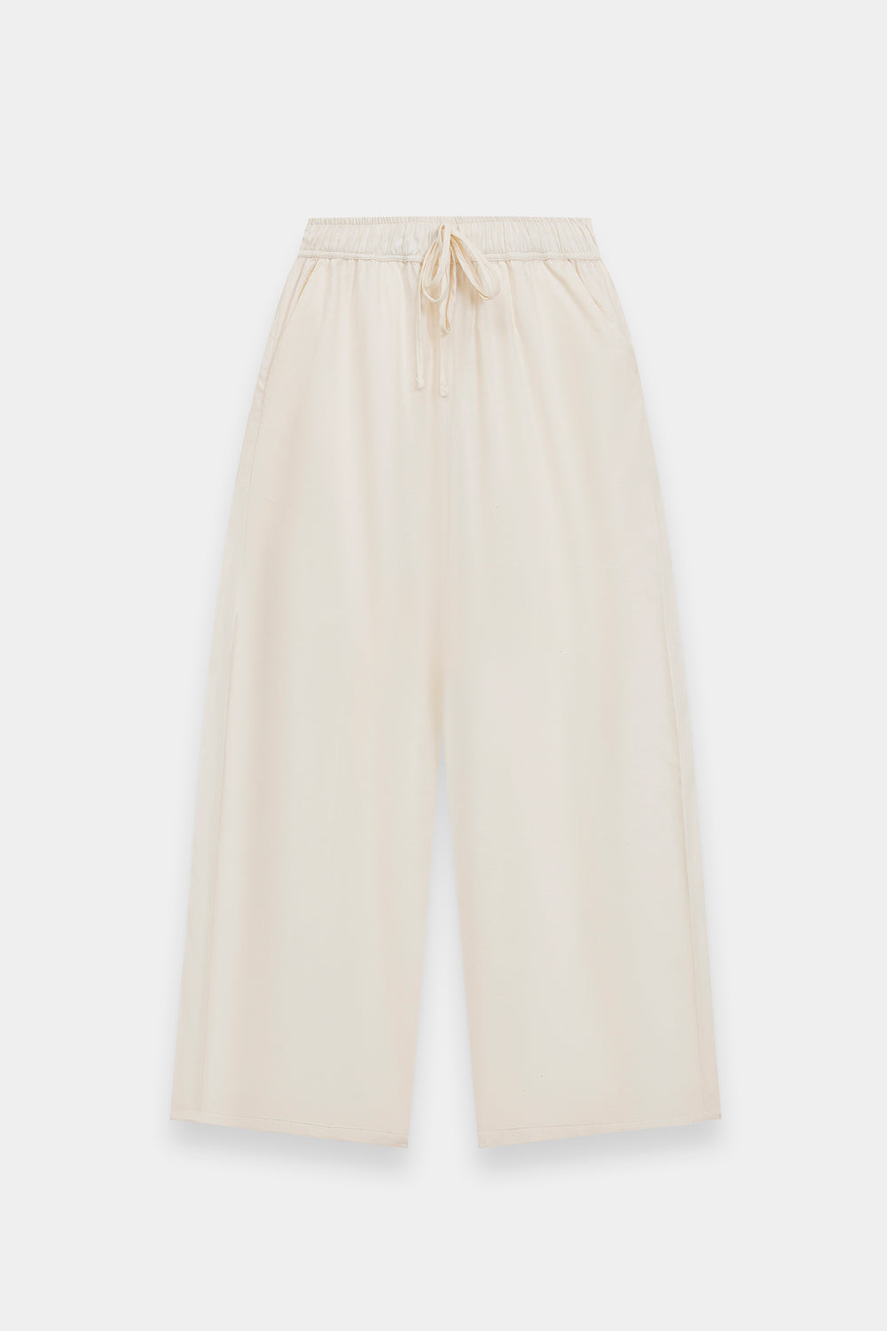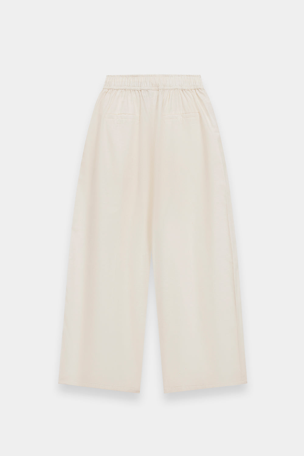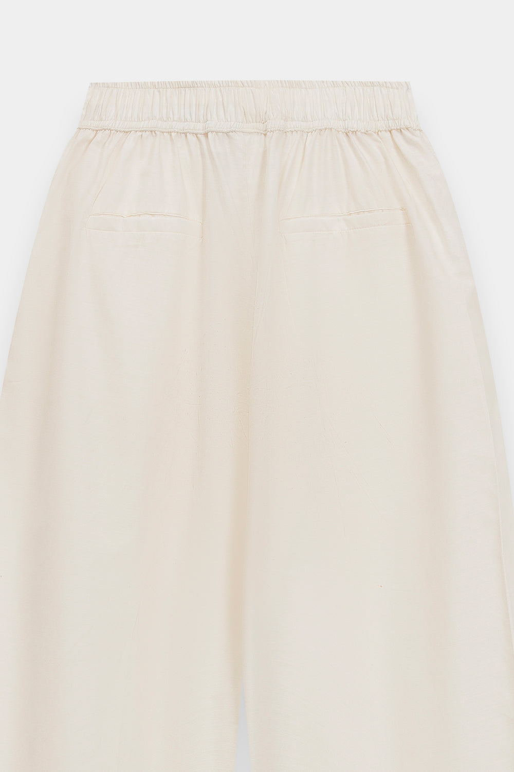 Complete your ensemble with these pristine white trouser, designed with a fluid, wide-leg silhouette that offers both comfort and a graceful drape. The trouser provide a clean and versatile base, for pairing with a variety of tops.