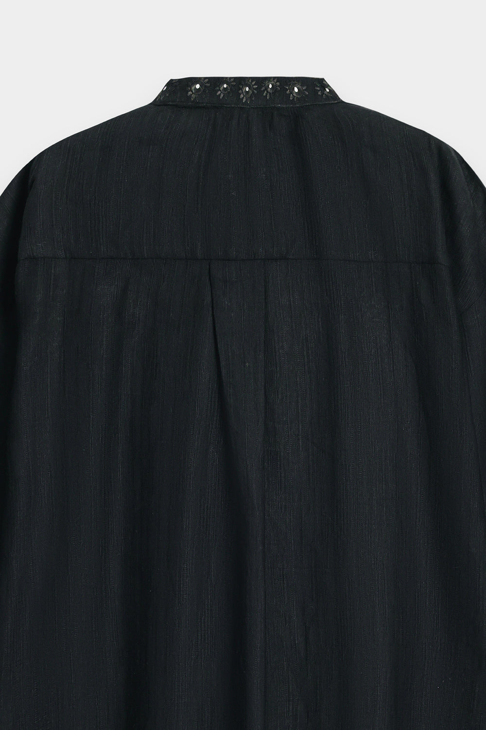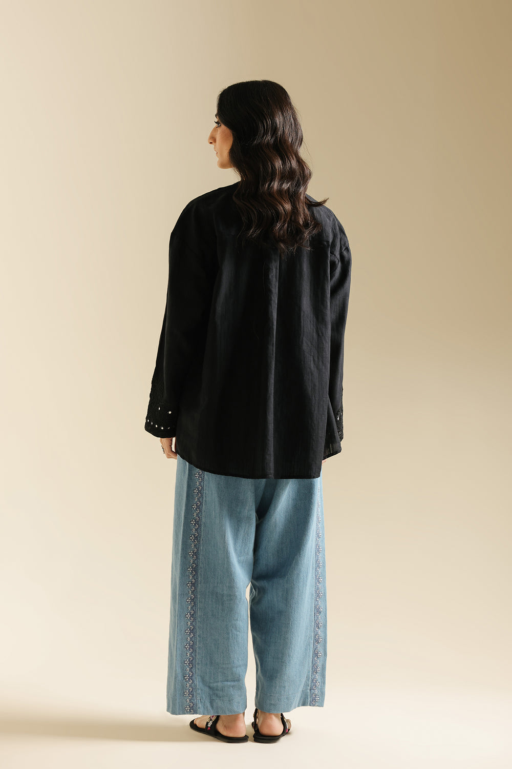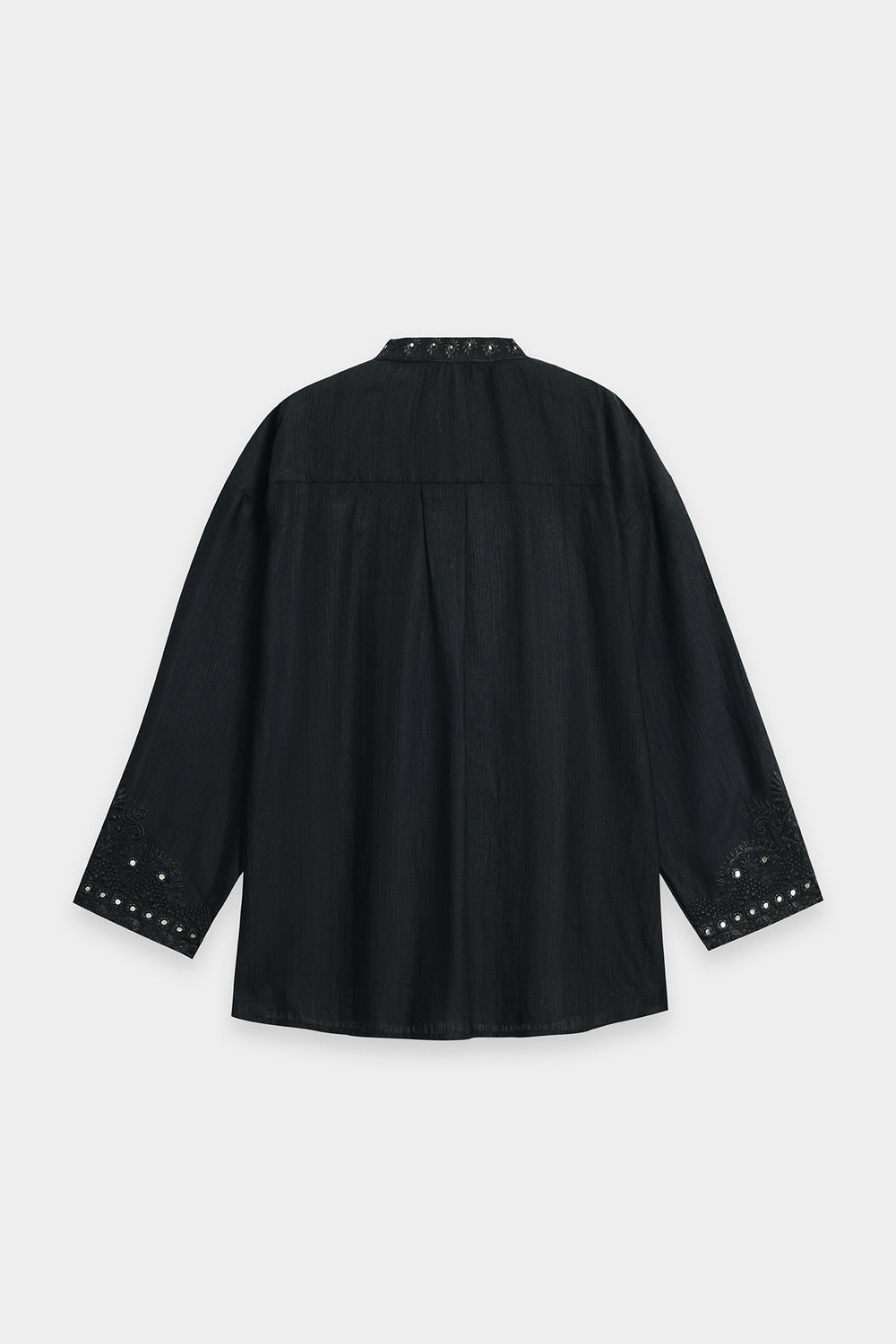 Adorn yourself in this striking black kurti, a perfect blend of modern style and traditional artistry. This top features intricate embroidery and shimmering mirror work around the neckline and on the sleeves, creating a captivating design. The relaxed fit ensures comfort while the elaborate detailing makes it a showstopper. Perfect for a festive occasion or a chic evening out, this kurti is sure to make a statement.