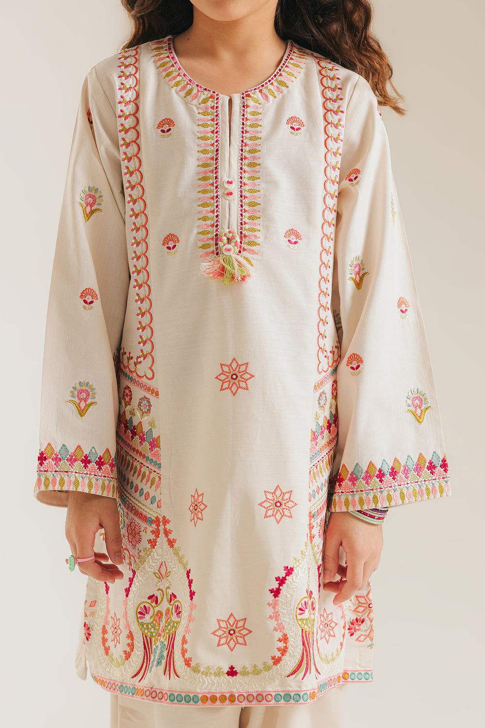 Introduce your child to timeless elegance with this off-white embroidered suit, expertly crafted for special occasions. Featuring intricate embroidery detailing that showcases traditional artistry, this ensemble combines comfort with sophisticated style. The soft, breathable fabric ensures all-day wearability, while the refined design makes it perfect for celebrations, family gatherings, or formal events. Available in coordinated pieces, this suit reflects quality craftsmanship and attention to detail that discerning parents appreciate for their children's wardrobes.