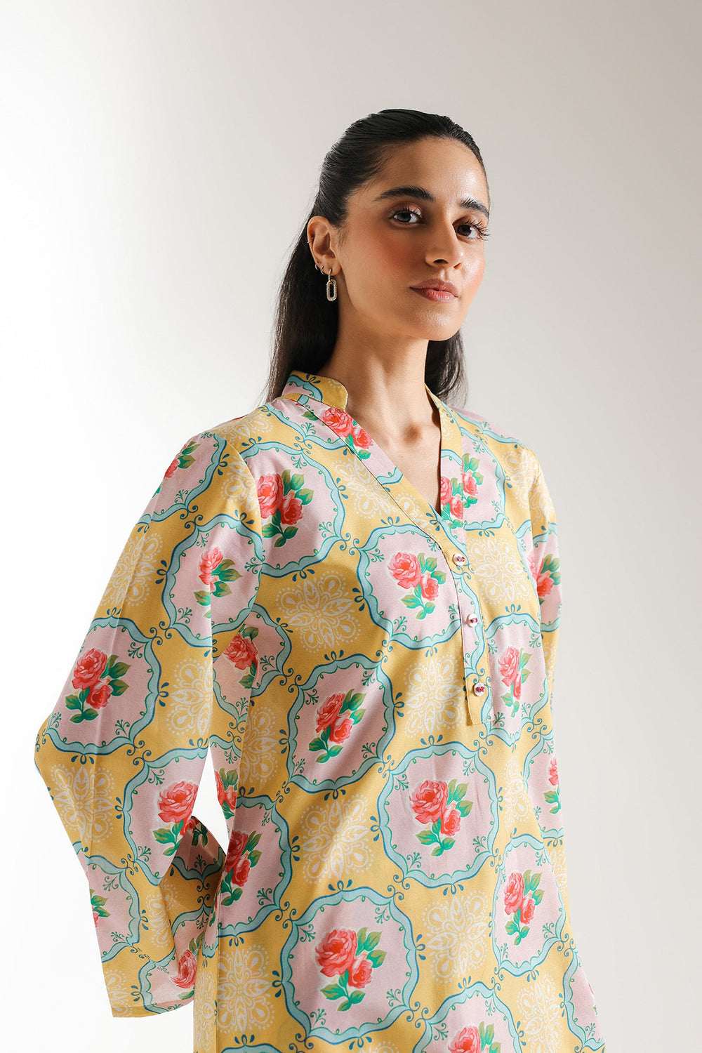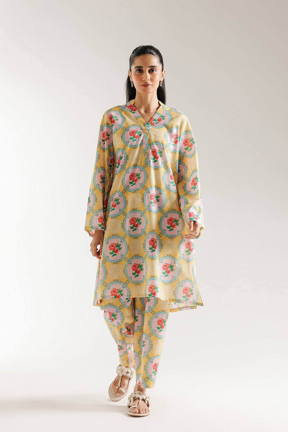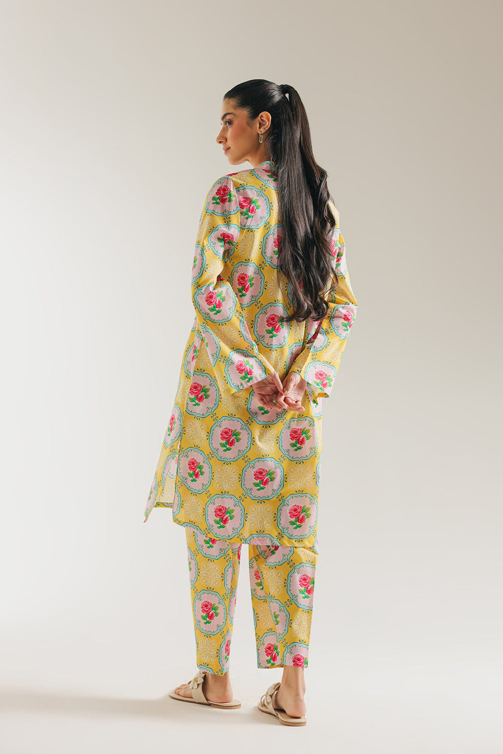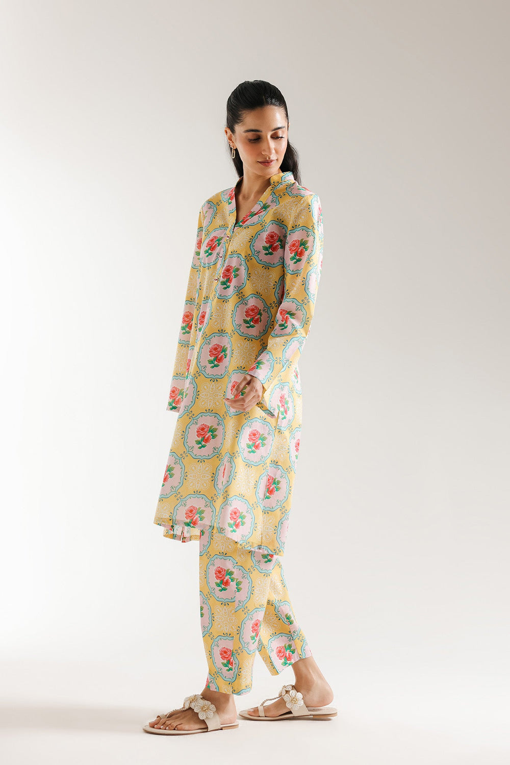 A contemporary composition is layered on this trendy silhouette shirt beautifully adorned with captivating artistic prints in vibrant colors portrayed on a mesmerizing yellow canvas. Paired with a matching trouser, this style statement outfit is a perfect option for you to embrace this summer season.