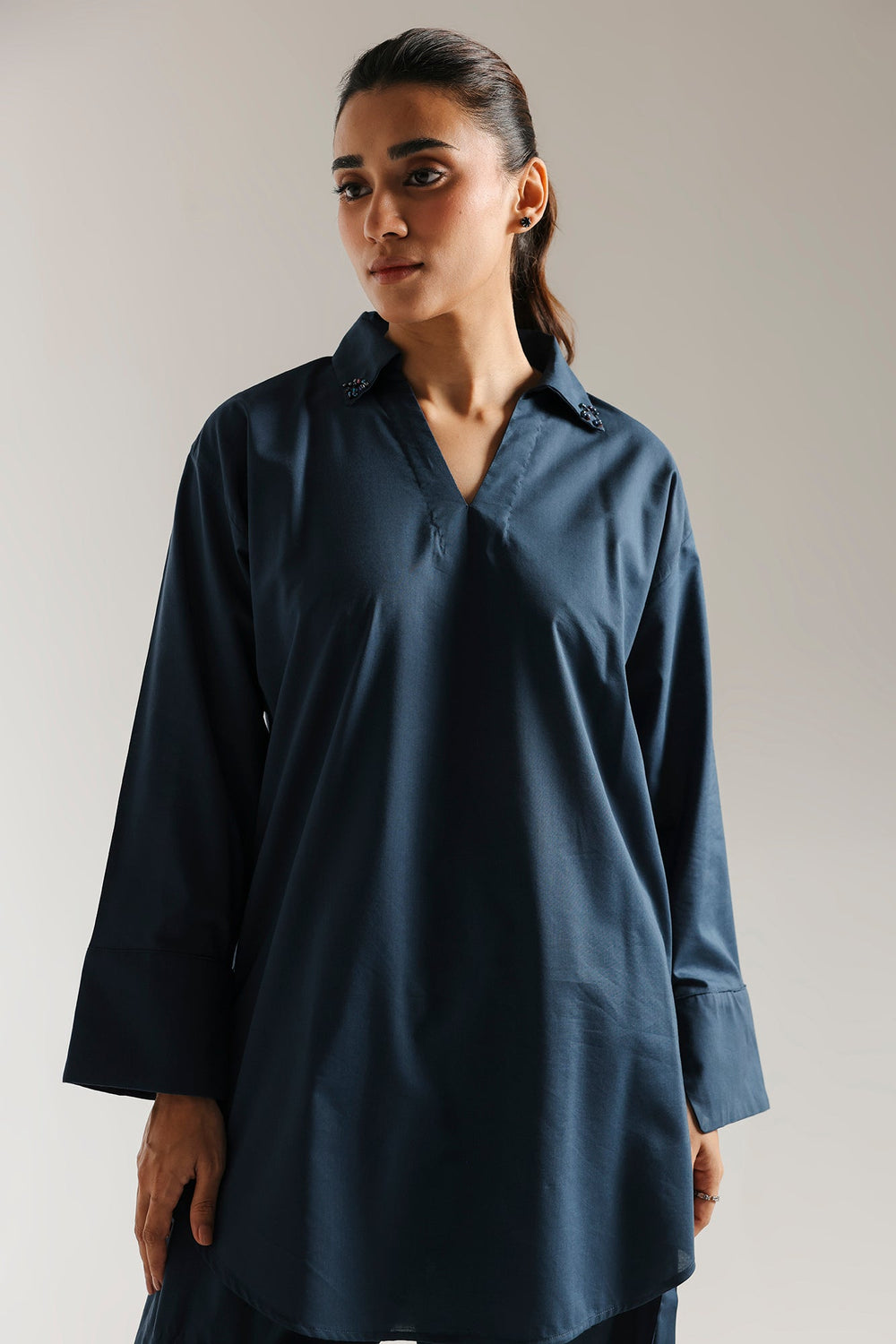 This timeless solid suit is the epitome of effortless sophistication. The classic navy blue kurta features a clean, simple V-neckline and a comfortable, relaxed fit. Paired with coordinating blue shalwar, this two-piece ensemble offers a graceful silhouette that can be dressed up or down. A versatile and essential addition to any wardrobe, perfect for any occasion where you want to exude classic style.