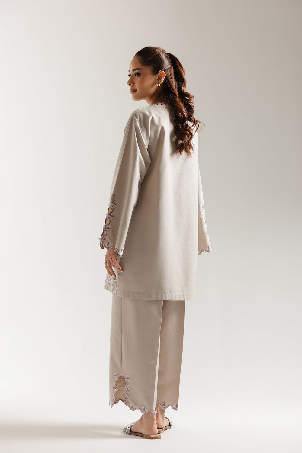 Elevate your wardrobe with this sophisticated white embroidered suit, expertly crafted for the modern woman. The ensemble features a refined short shirt paired with gracefully flowing wide-leg trousers, creating an effortlessly elegant silhouette. Intricate cut work adorns the sleeves, while delicate scalloped hemming adds a refined finishing touch. This versatile piece transitions seamlessly from formal occasions to elevated everyday wear, offering timeless style with contemporary design elements. Perfect for those who appreciate quality craftsmanship and understated luxury.