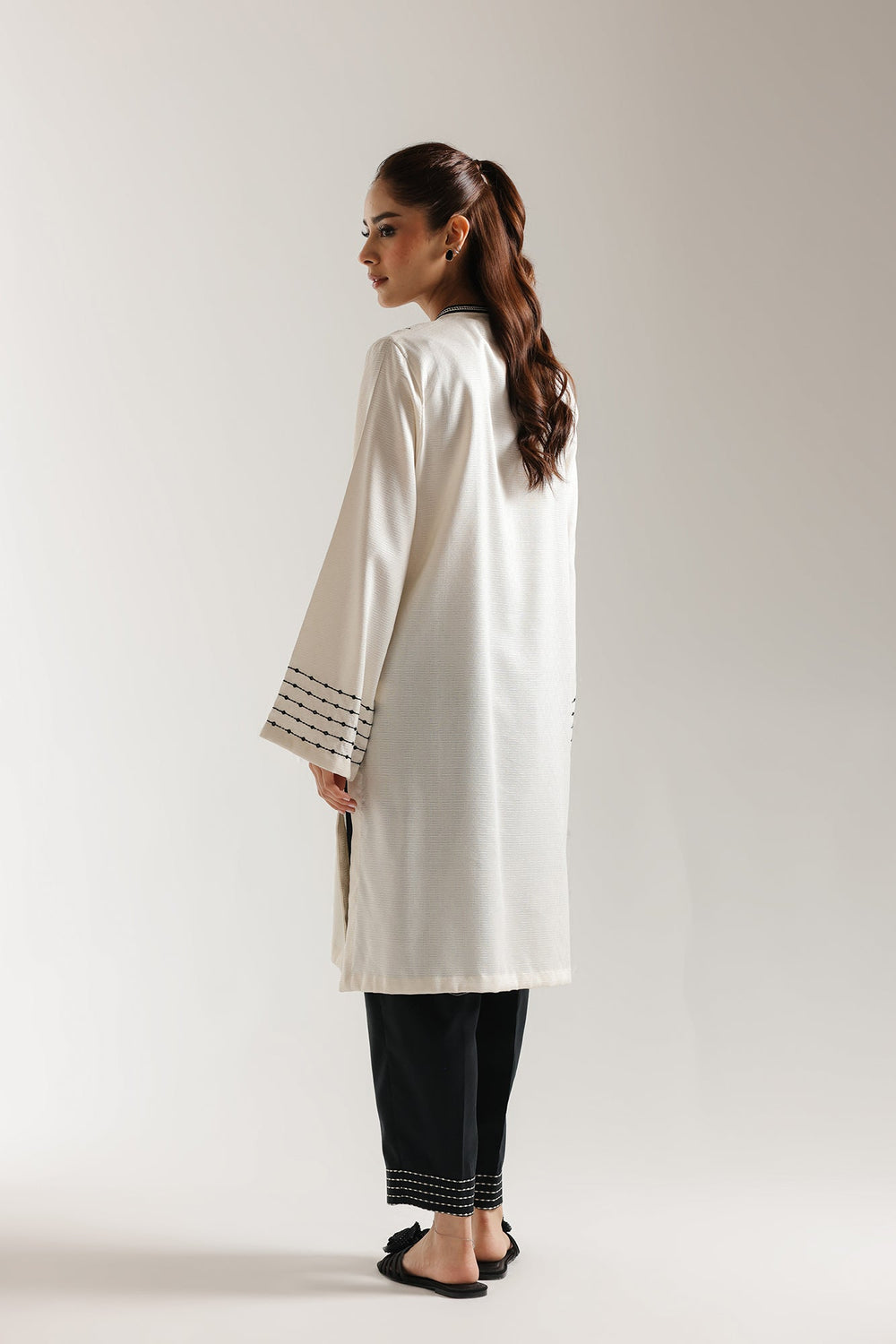 Elevate your wardrobe with this sophisticated embroidered suit featuring an off-white shirt adorned with intricate black embroidery, paired seamlessly with matching black shalwar. The refined contrast between the crisp off-white base and detailed black threadwork creates a timeless aesthetic perfect for both formal occasions and elevated everyday wear. Crafted with attention to detail, this ensemble combines traditional elegance with contemporary styling, offering versatility and grace in every wear.
