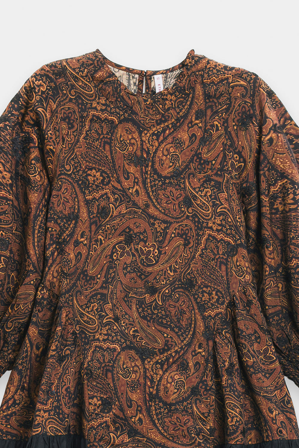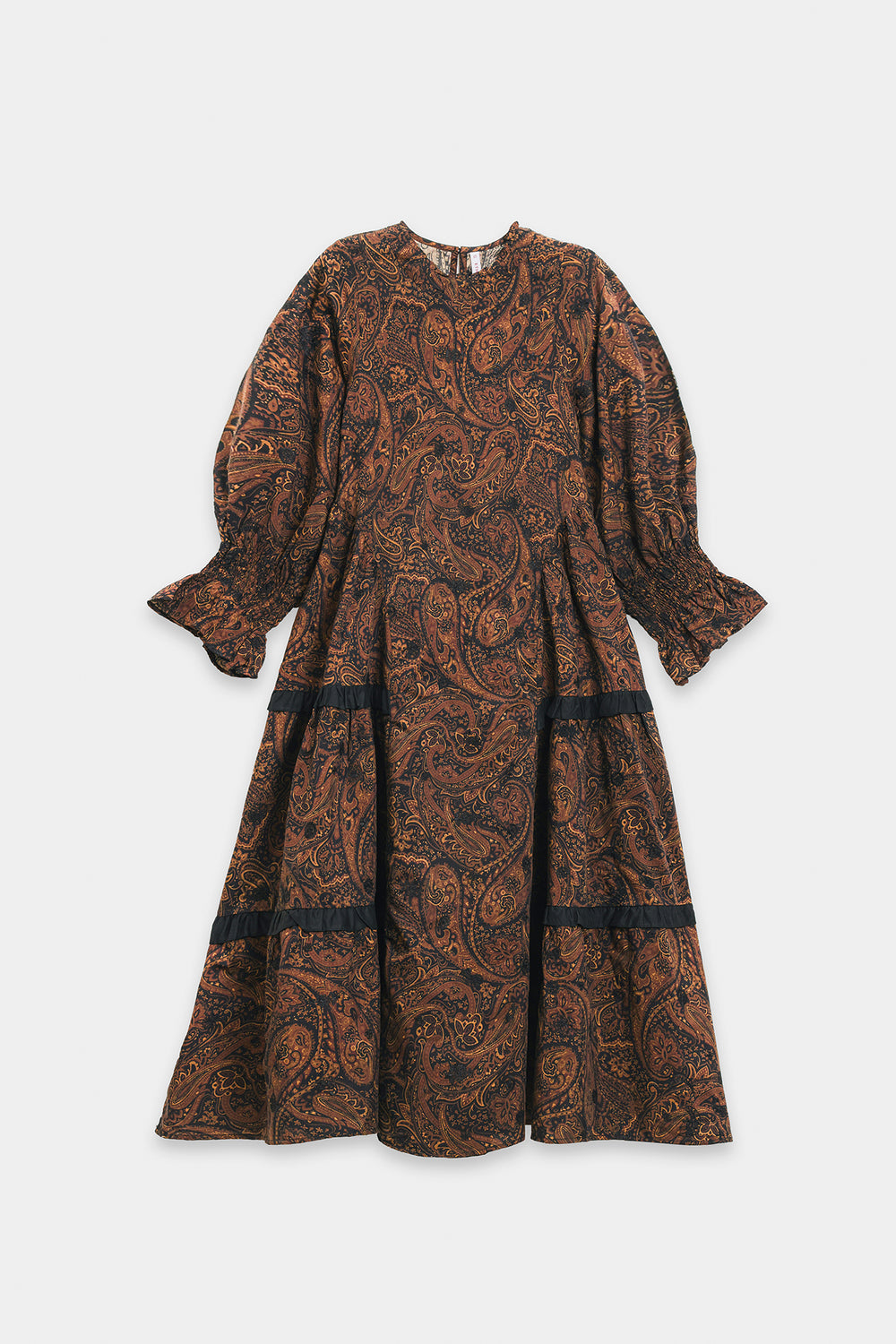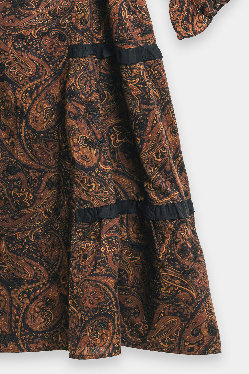 Elevate your winter wardrobe with this expertly crafted embroidered dress featuring intricate embroidery layered on a striking black canvas. The contemporary silhouette showcases playful paisley prints in deep brown hues that bring an artistic, experimental edge to the ensemble. Designed for those who appreciate refined craftsmanship paired with modern aesthetics, this piece transitions seamlessly from daytime gatherings to evening celebrations. The sophisticated embroidery detailing ensures you'll stand out with understated elegance at any occasion.
