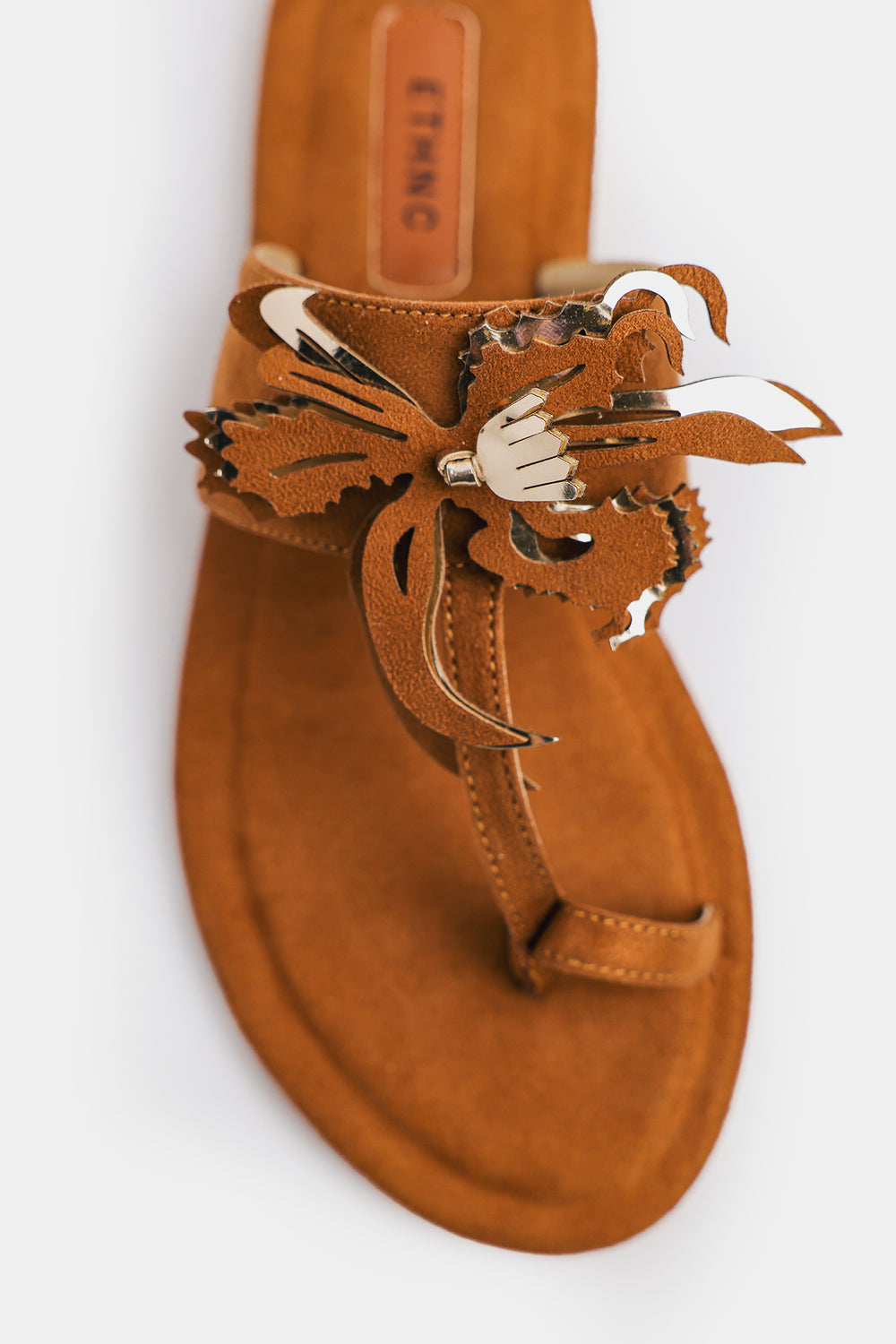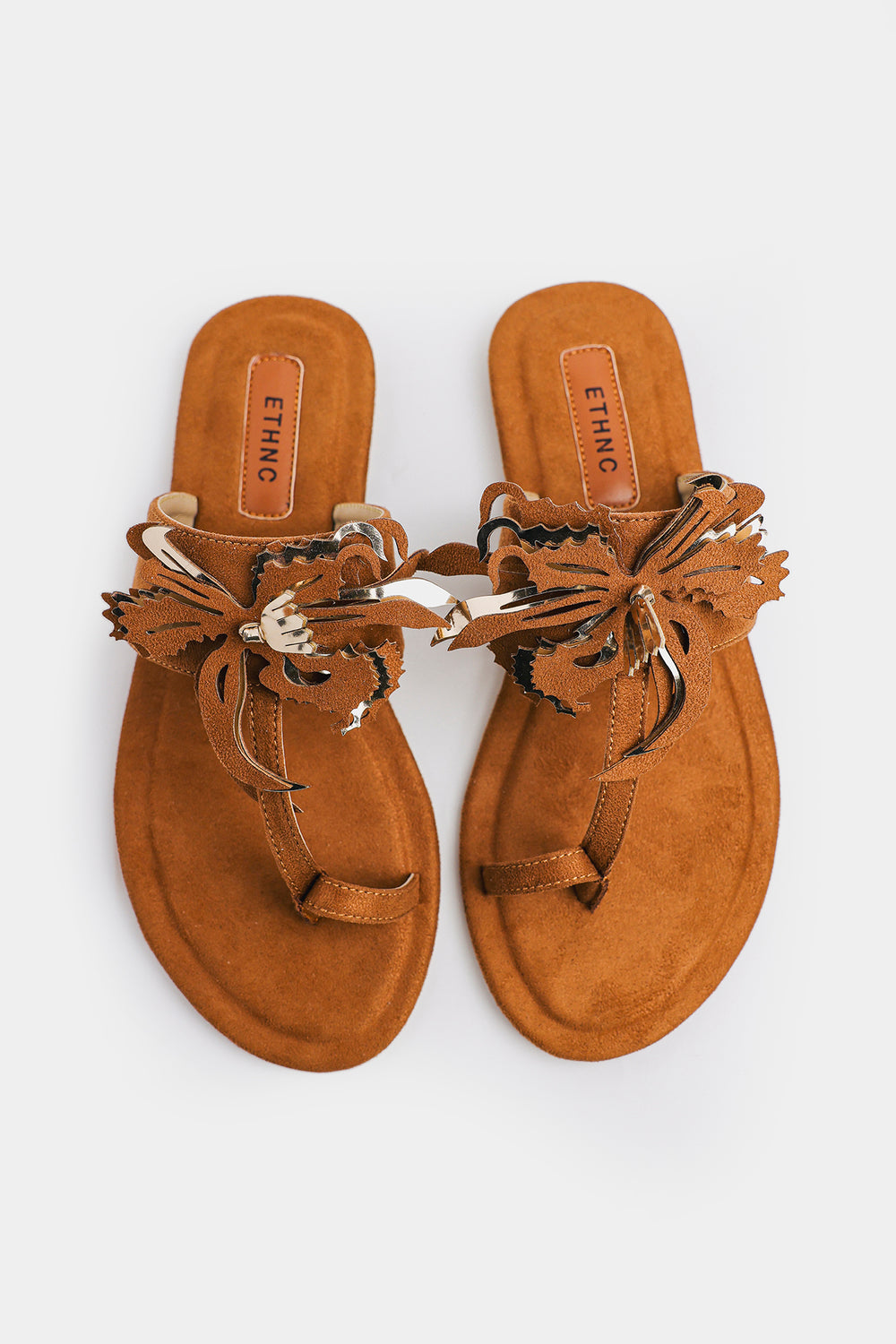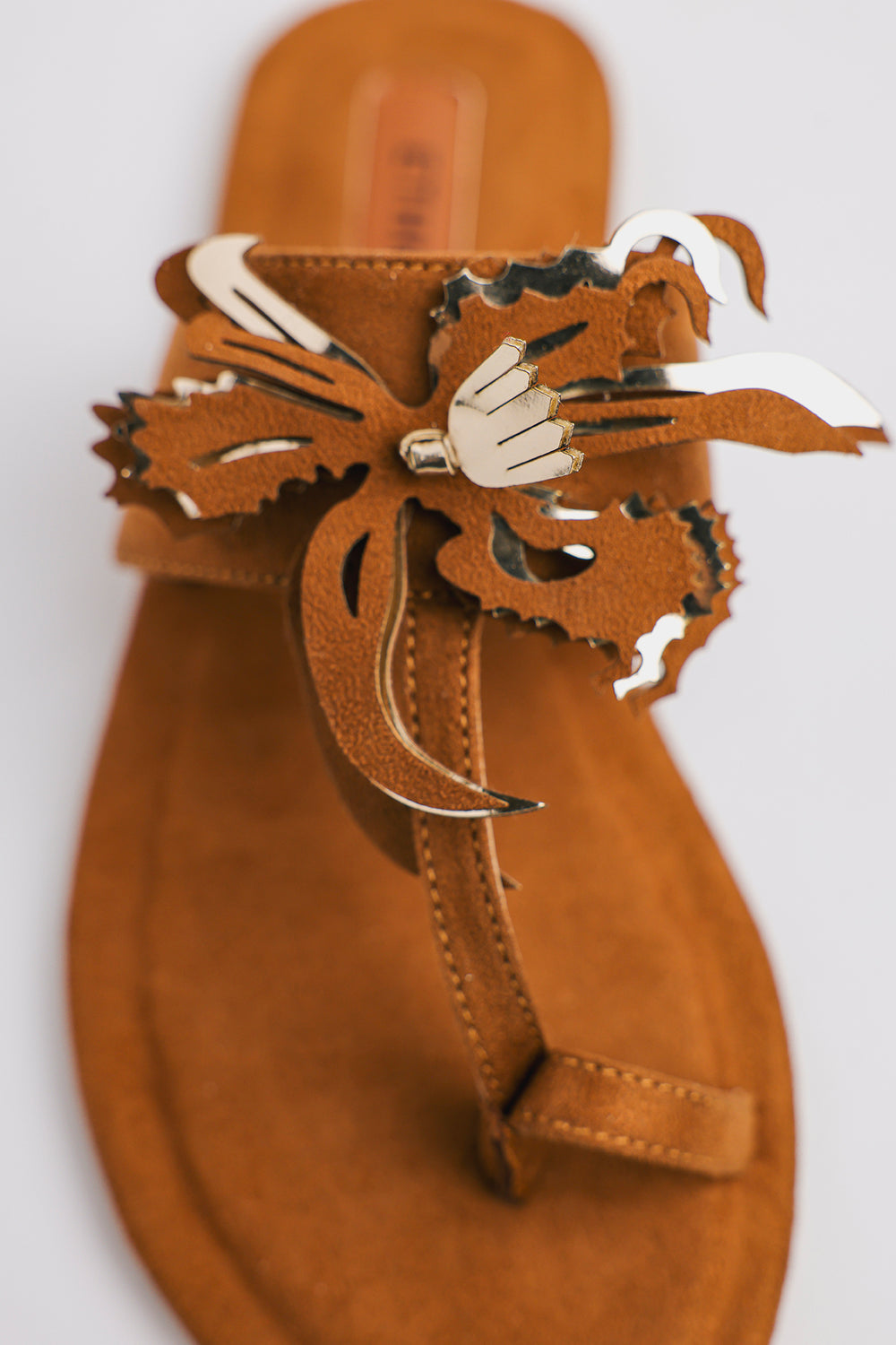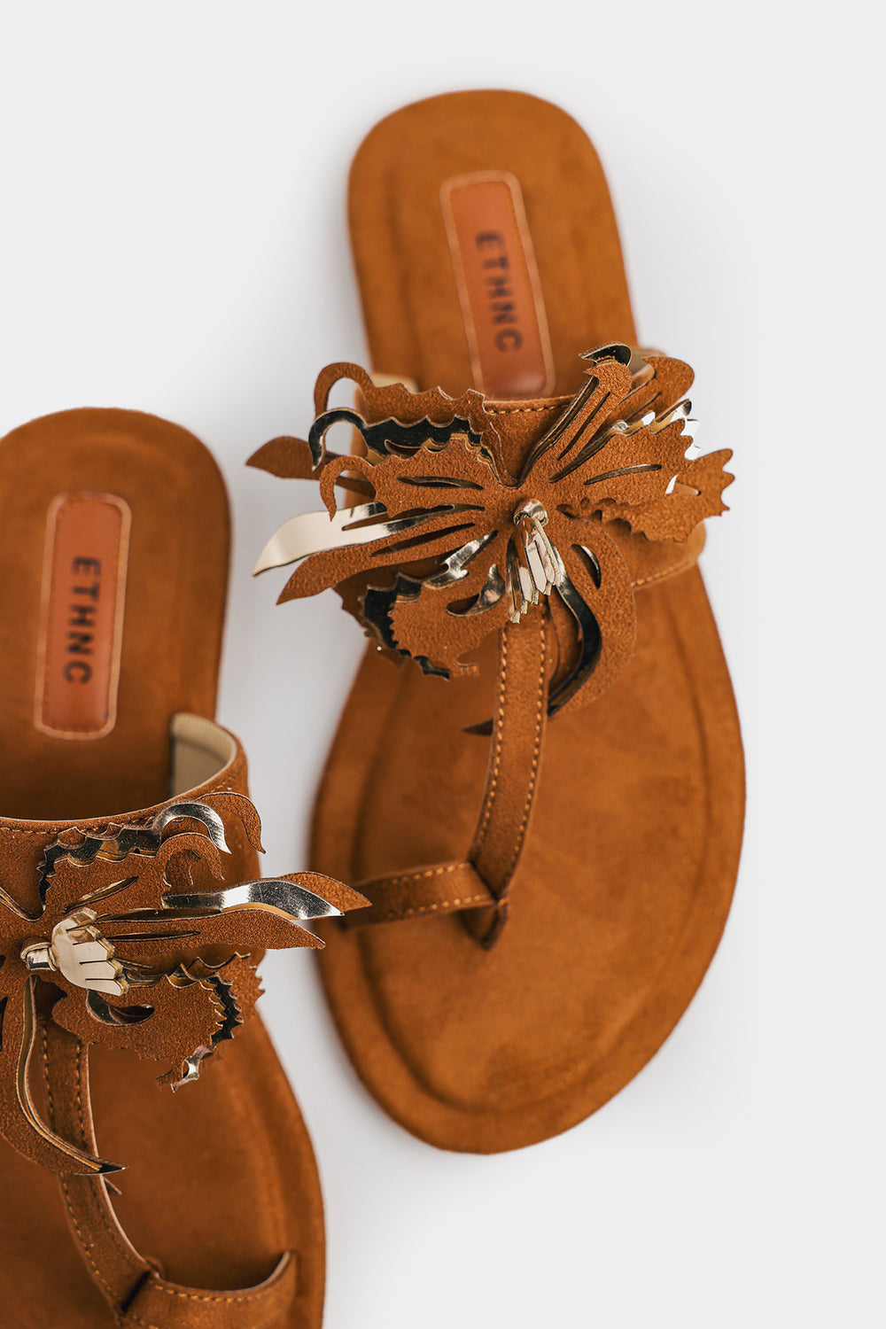 These tan Khola puri showcase Ethnic's signature bohemian aesthetic with a striking fringed floral appliqué adorning the straps—each piece bearing intricate embroidery and hand-finished details that celebrate traditional craftsmanship. The soft microfiber footbed provides gentle support, while the secure toe-loop design ensures stability throughout your day. Versatile enough to complement casual summer ensembles or pair seamlessly with traditional Eastern wear, these sandals deliver effortless style with authentic character.