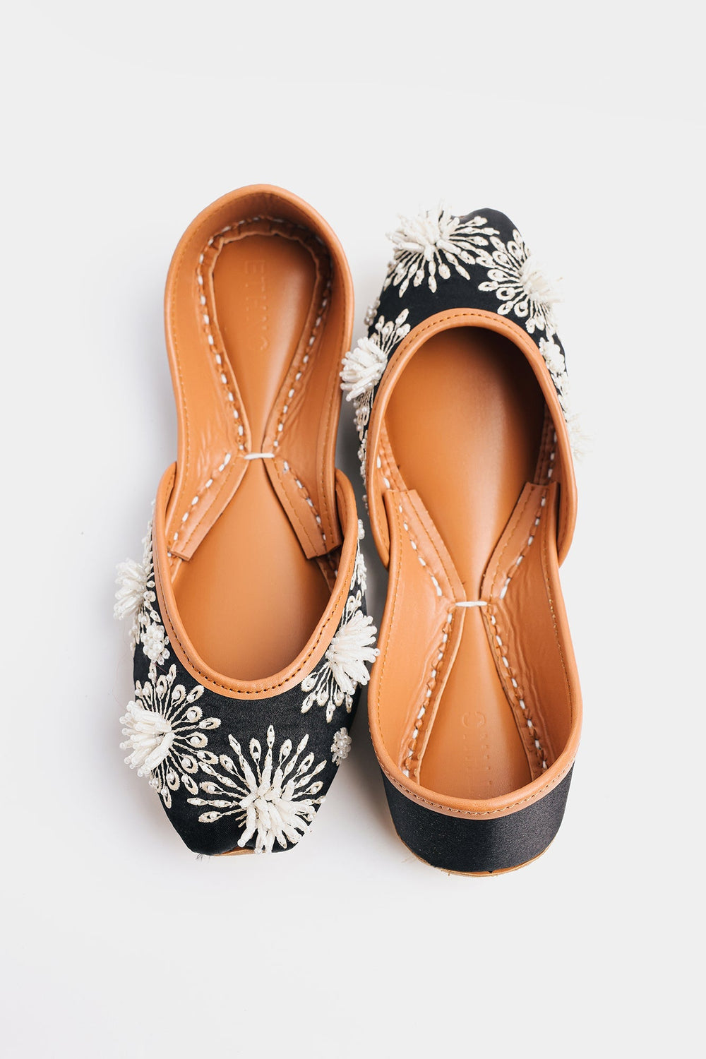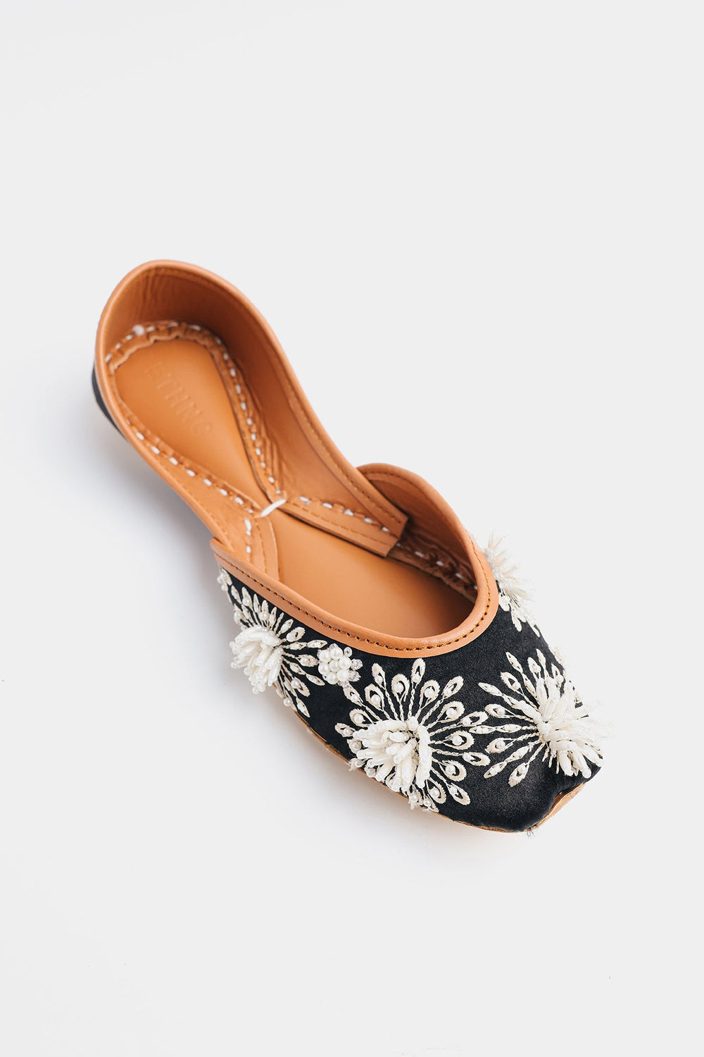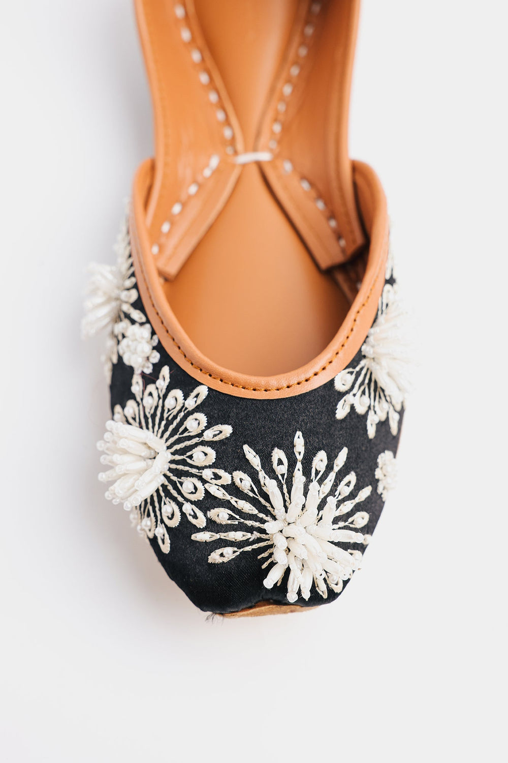 This khussa is expertly crafted in a delicate black color with beautifully beaded flower patterns. Add a touch of elegance to any outfit with this exquisite footwear.