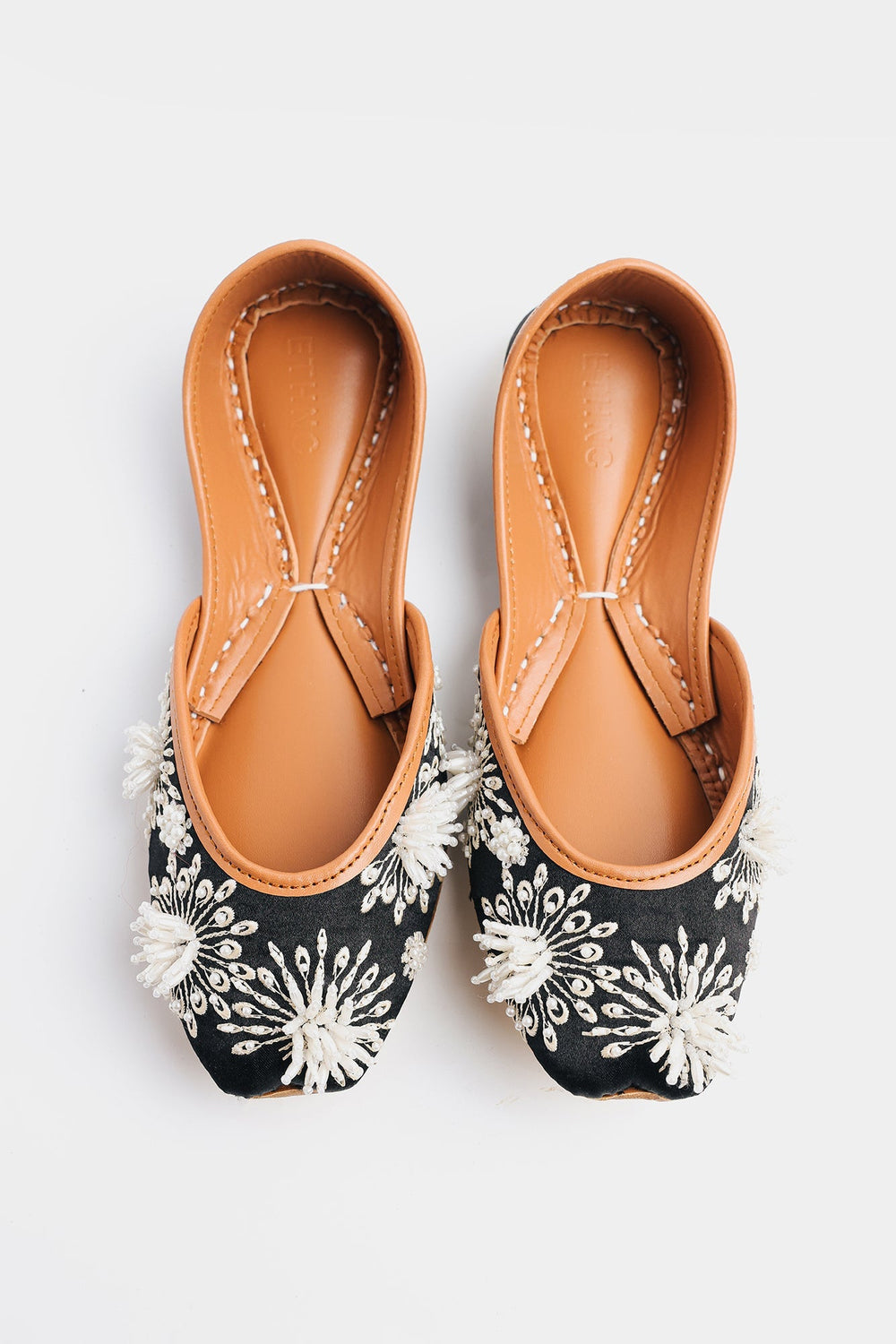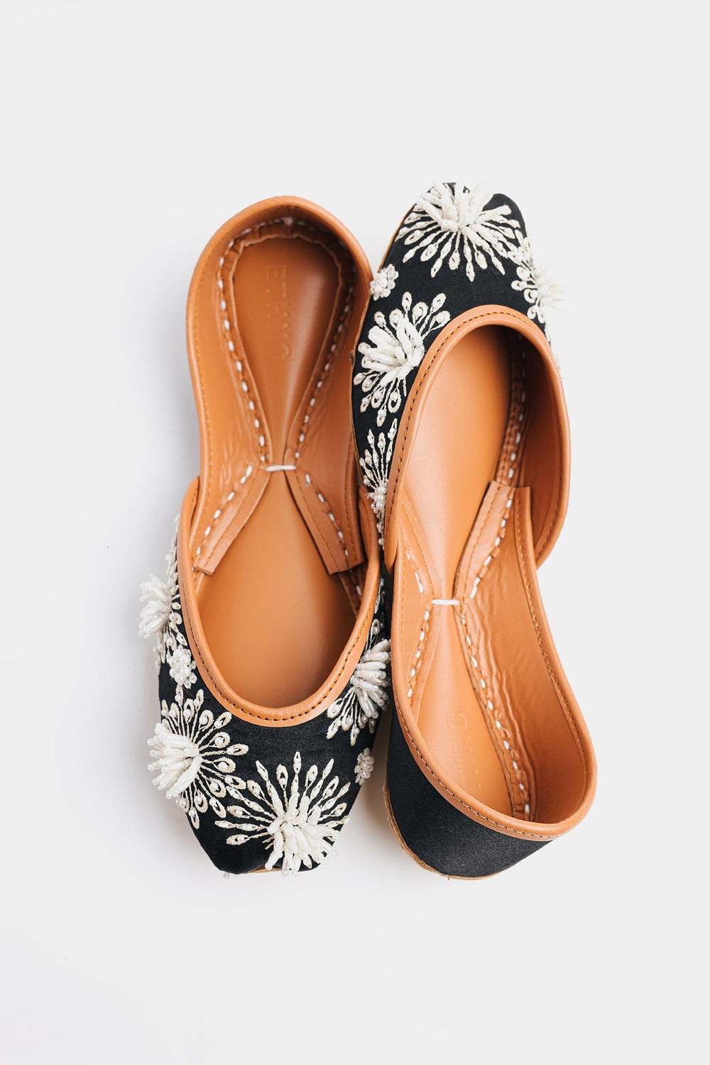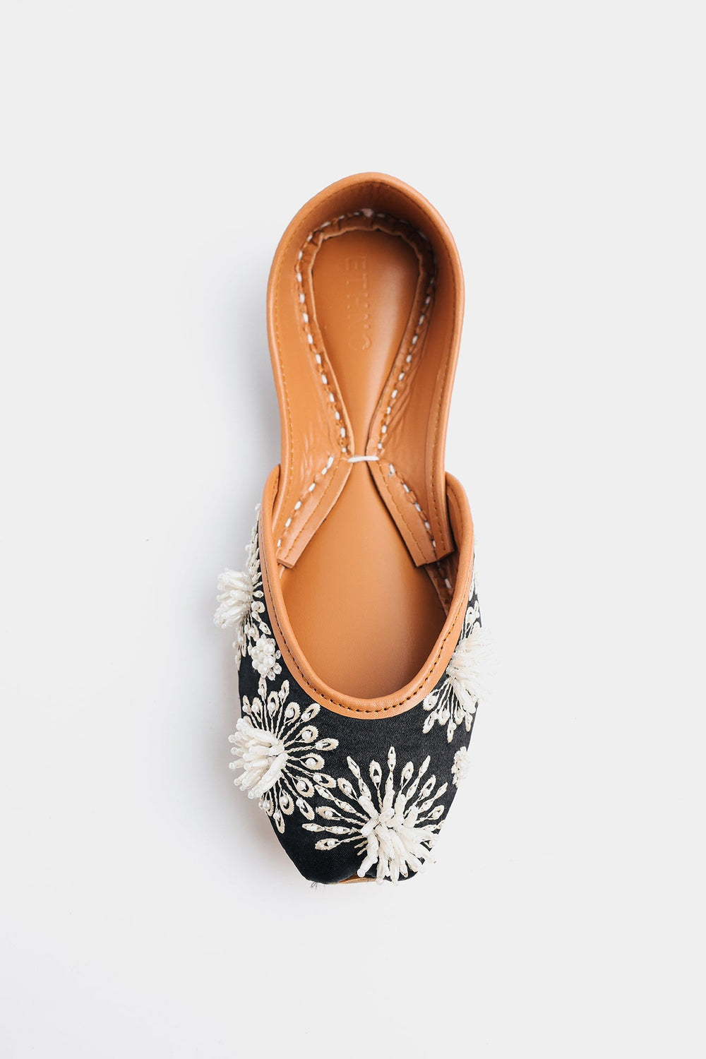 This khussa is expertly crafted in a delicate black color with beautifully beaded flower patterns. Add a touch of elegance to any outfit with this exquisite footwear.