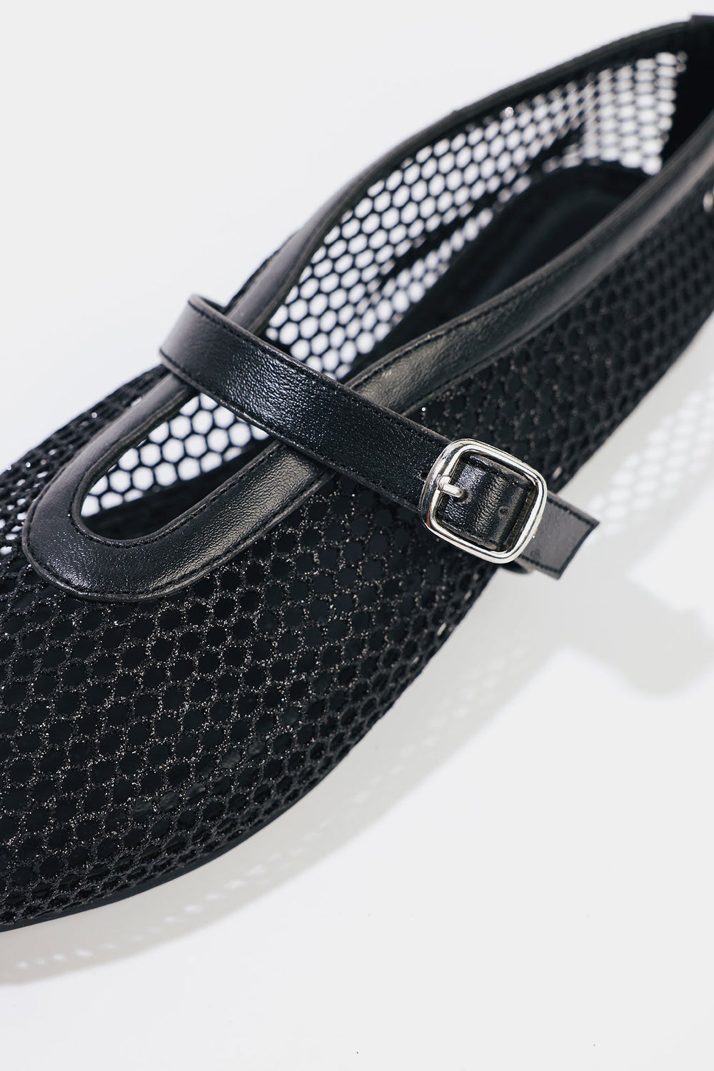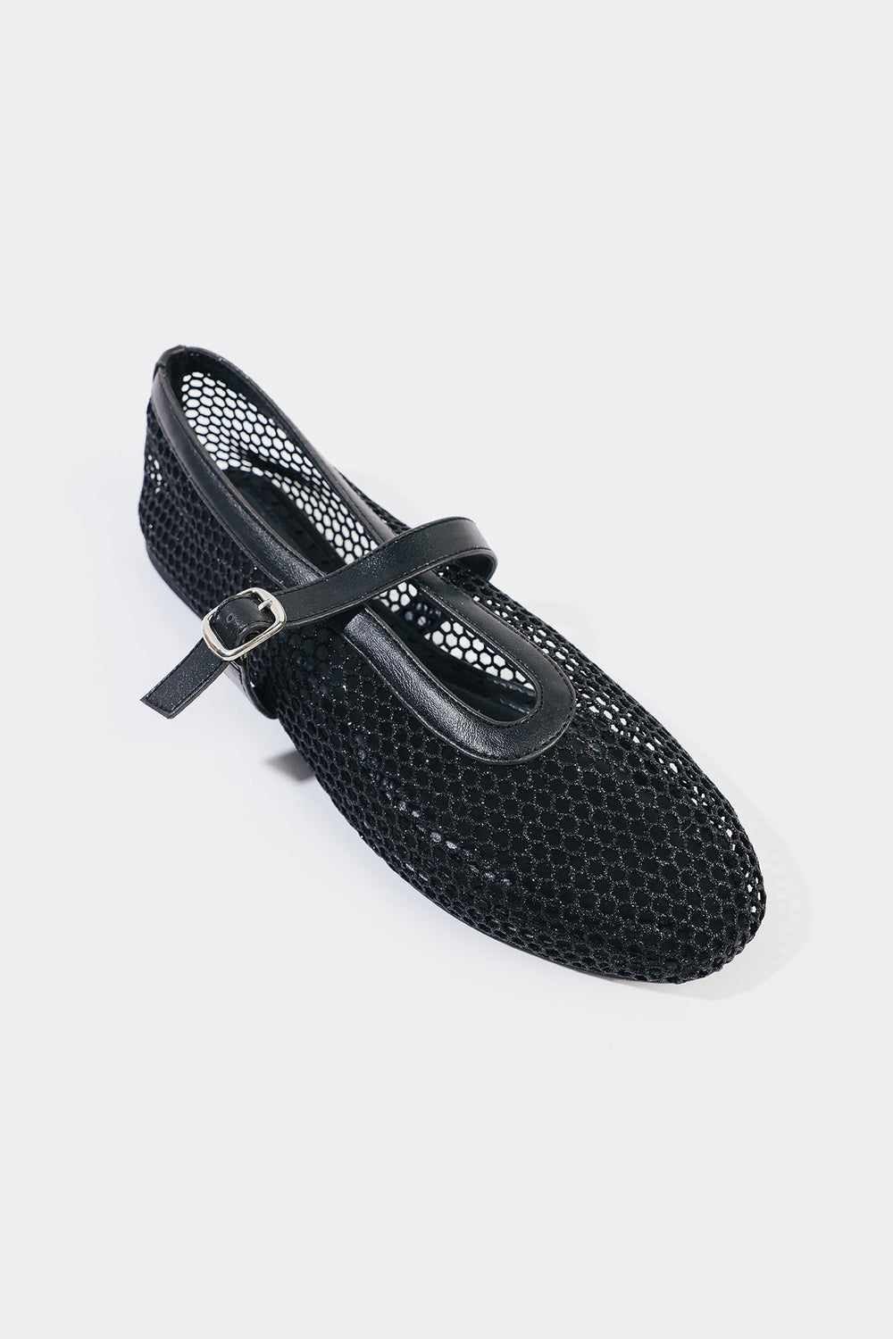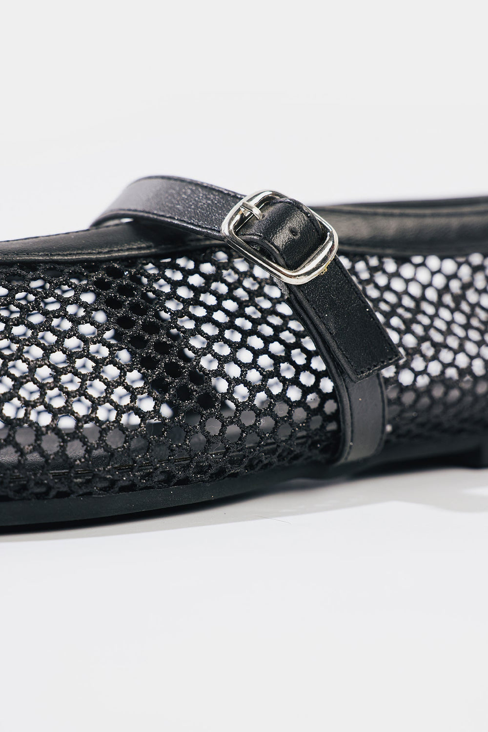 Step into charming elegance with these black mesh pumps. Featuring a delicate, breathable mesh design and a secure buckle strap, they offer a sophisticated and comfortable choice for any occasion.