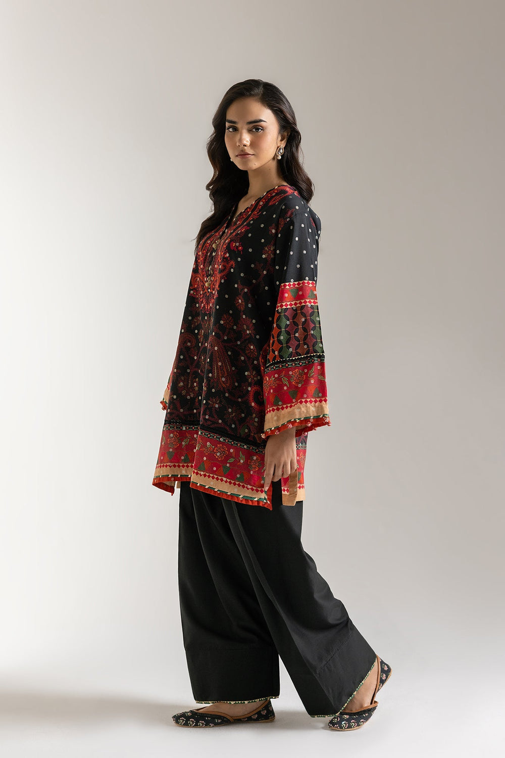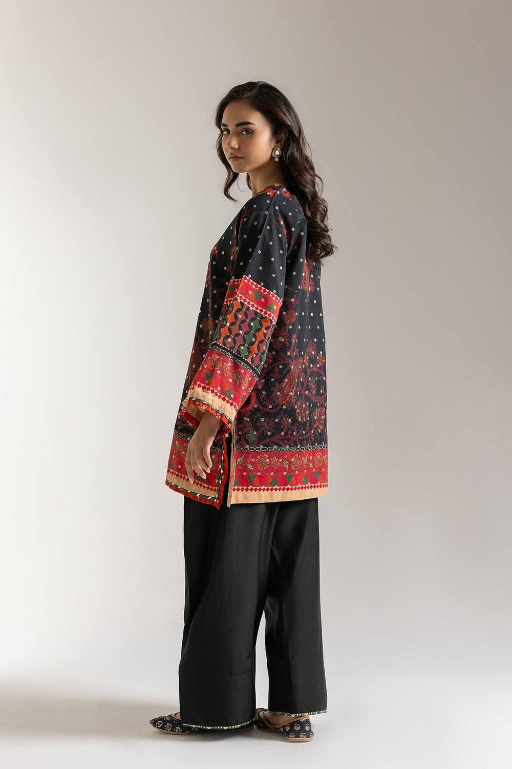 Experience the captivating allure of this jacquard zari ensemble, where opulent textures meet vibrant artistry. The shirt shimmers with the subtle richness of jacquard, intricately woven with zari threads that gracefully catch the light with every movement. The mesmerizing print, a burst of traditional motifs and rich hues, is further elevated by exquisite detailing around the neckline and sleeves. Paired with a luxuriously comfortable shalwar, this outfit offers a harmonious blend of heritage elegance and contemporary flair, ensuring you unveil timeless splendor and make a sophisticated statement at any special occasion. This isn't just an outfit; it's an experience in grace and refined sophistication.