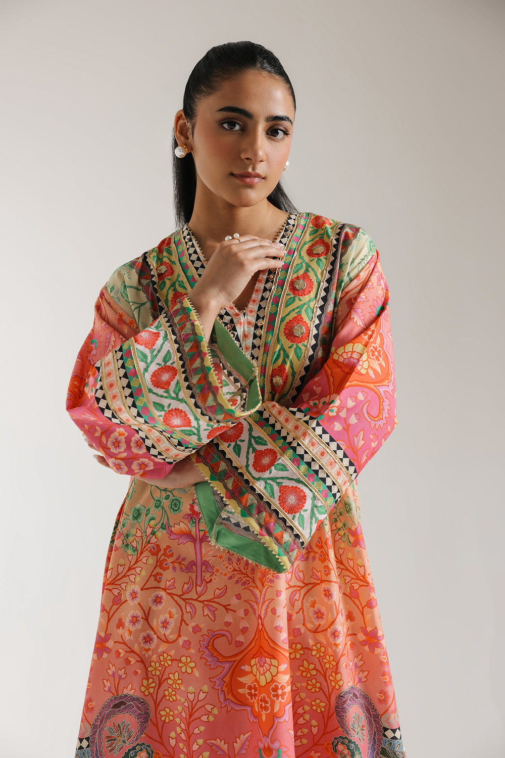 This fashion-forward ensemble showcases a classic and sophisticated design with a bright yellow hue and adorned with aesthetically rich floral prints in vibrant colors. The modern Aline shirt is adorned with intricate embroidery with scintillating details, perfectly complementing the traditionally rich contrasted white embroidered shalwar. A perfect choice for your summer wardrobe.