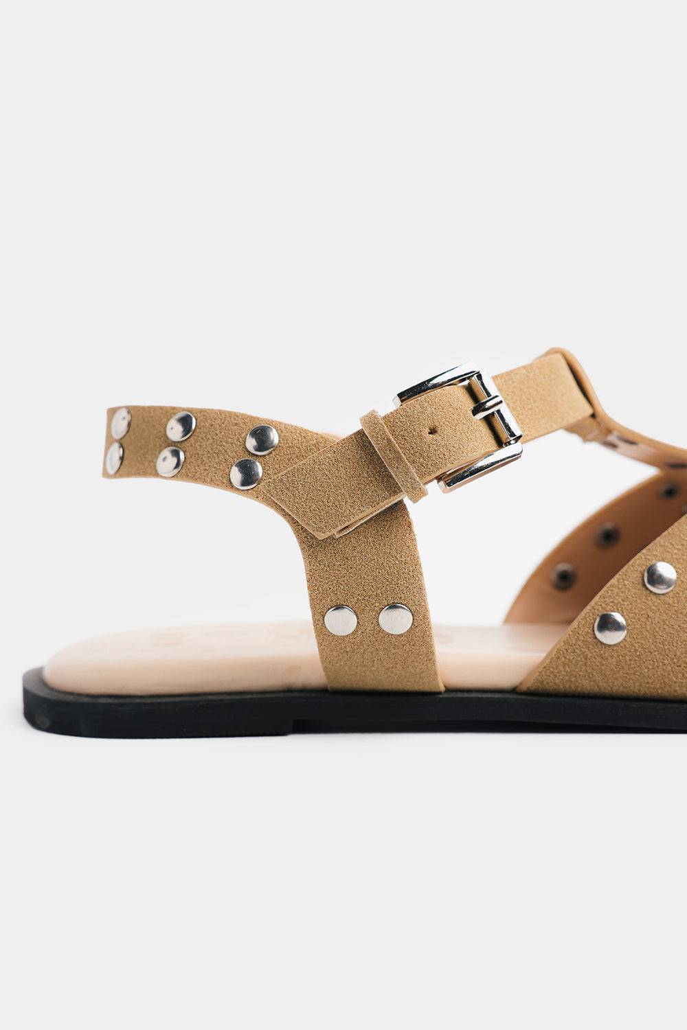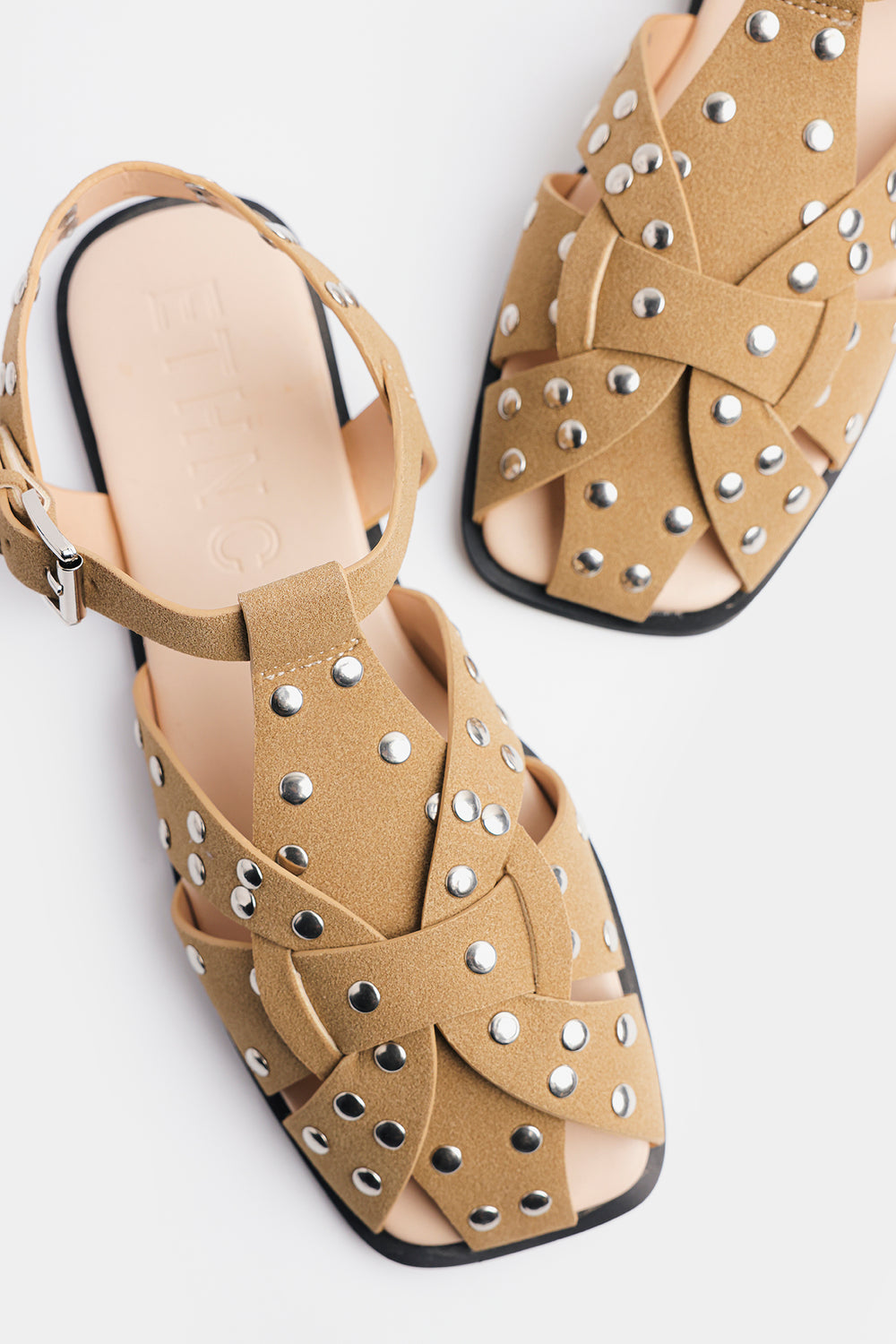 Step into statement style with these chic studded slingback sandals. Crafted in a warm tan hue, the design features crisscross straps adorned with metallic studs for a bold yet elegant look. The secure ankle strap with a buckle closure ensures a comfortable fit, while the cushioned insole provides all-day comfort. Perfect for pairing with both casual and dressy outfits, these sandals add a touch of edgy sophistication to your wardrobe.