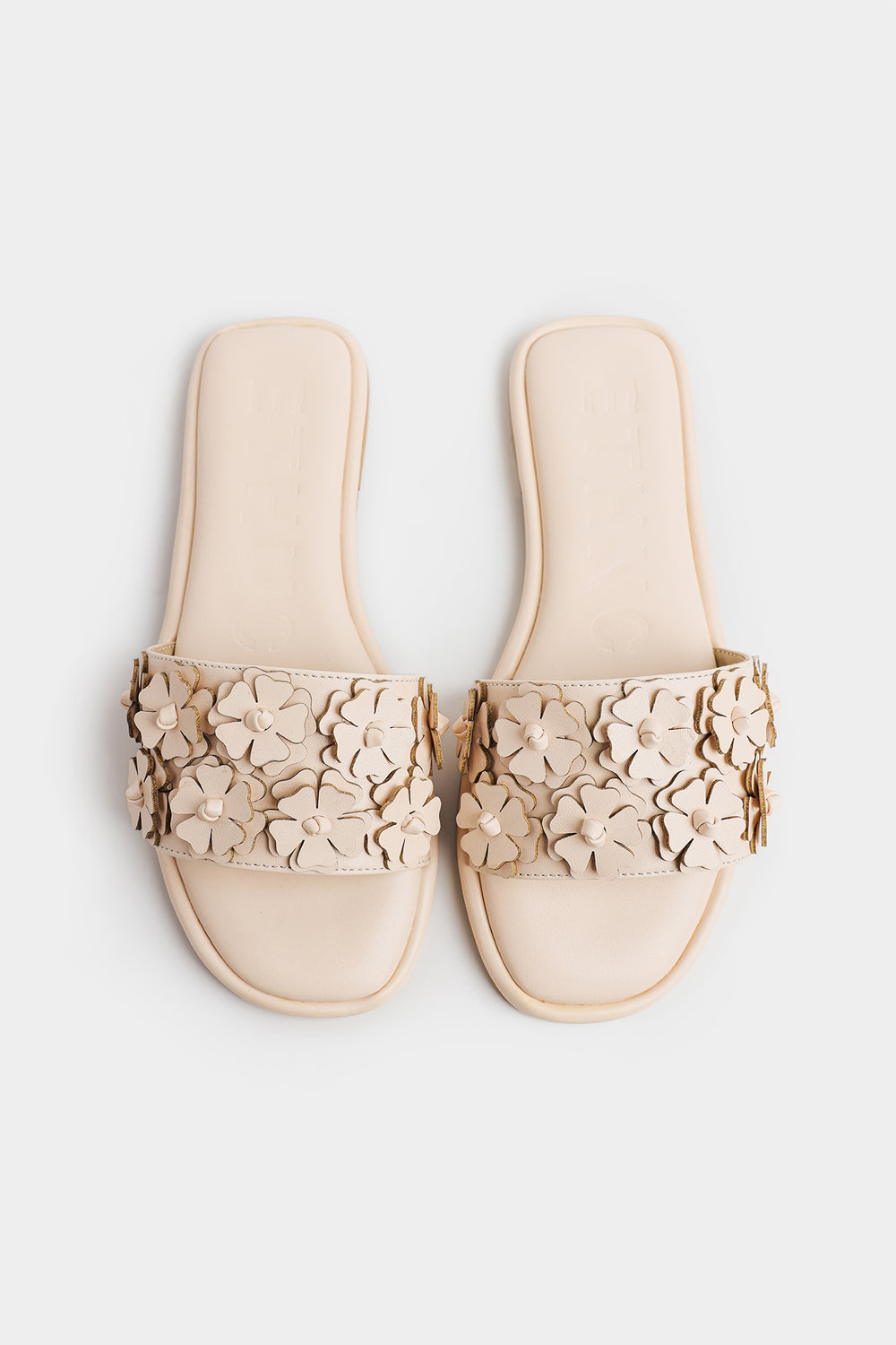 Step into a world of effortless grace with these exquisite vanilla cream slide sandals, where minimalist tones meet lush botanical artistry. The broad single strap is transformed into a textured garden, featuring dense layers of handcrafted 3D floral appliqués that create a rich, sculptural effect. Each bloom is meticulously detailed with a tonal center, offering a sophisticated monochromatic look that radiates understated luxury. Designed for the modern woman on the go, these slides feature a smooth, cushioned footbed and a sleek open-toe silhouette, providing both breathable comfort and a polished aesthetic.