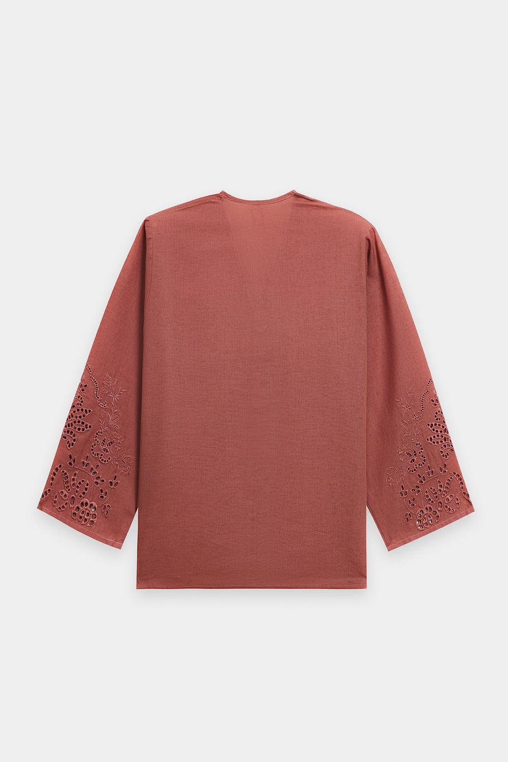 Elevate your wardrobe with the earthy charm of this embroidered suit. Crafted in a rich caramel hue, this stylish co-ord set features a relaxed-fit shirt with intricate cutwork embroidery on the sleeves and hem, adding a delicate touch. The matching wide-leg trousers also boast beautiful cutwork details along the hem, creating a cohesive and sophisticated ensemble. This suit is a perfect blend of comfort and captivating craftsmanship.