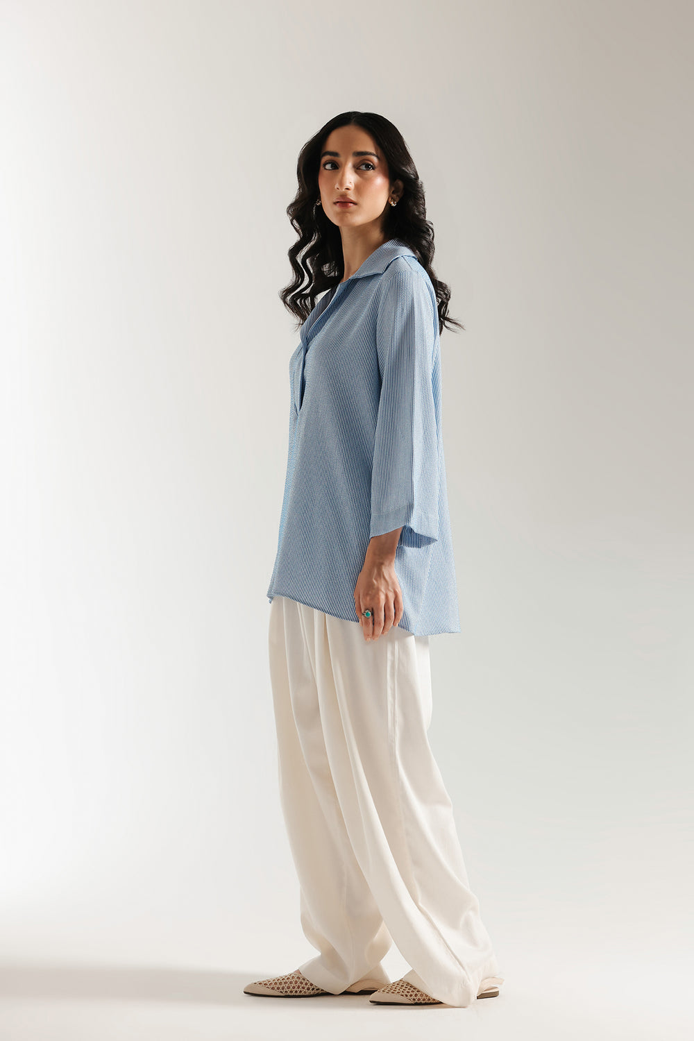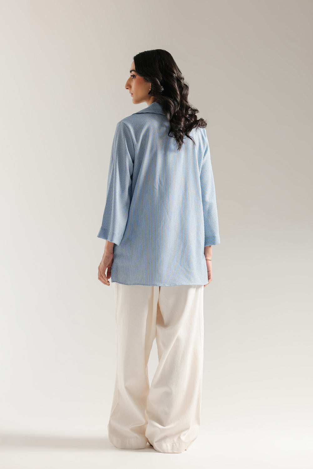Inject a dose of refined simplicity into your wardrobe with this stylish shirt. This beautiful light blue shirt features a delicate striped pattern and a loose, comfortable fit. It has a classic cuban collar, making it a versatile and timeless addition to any wardrobe.