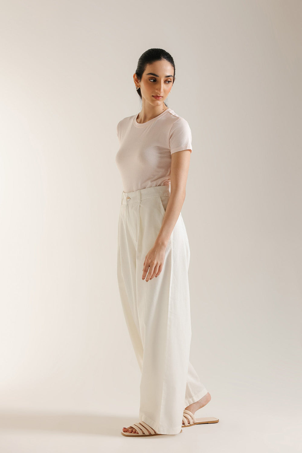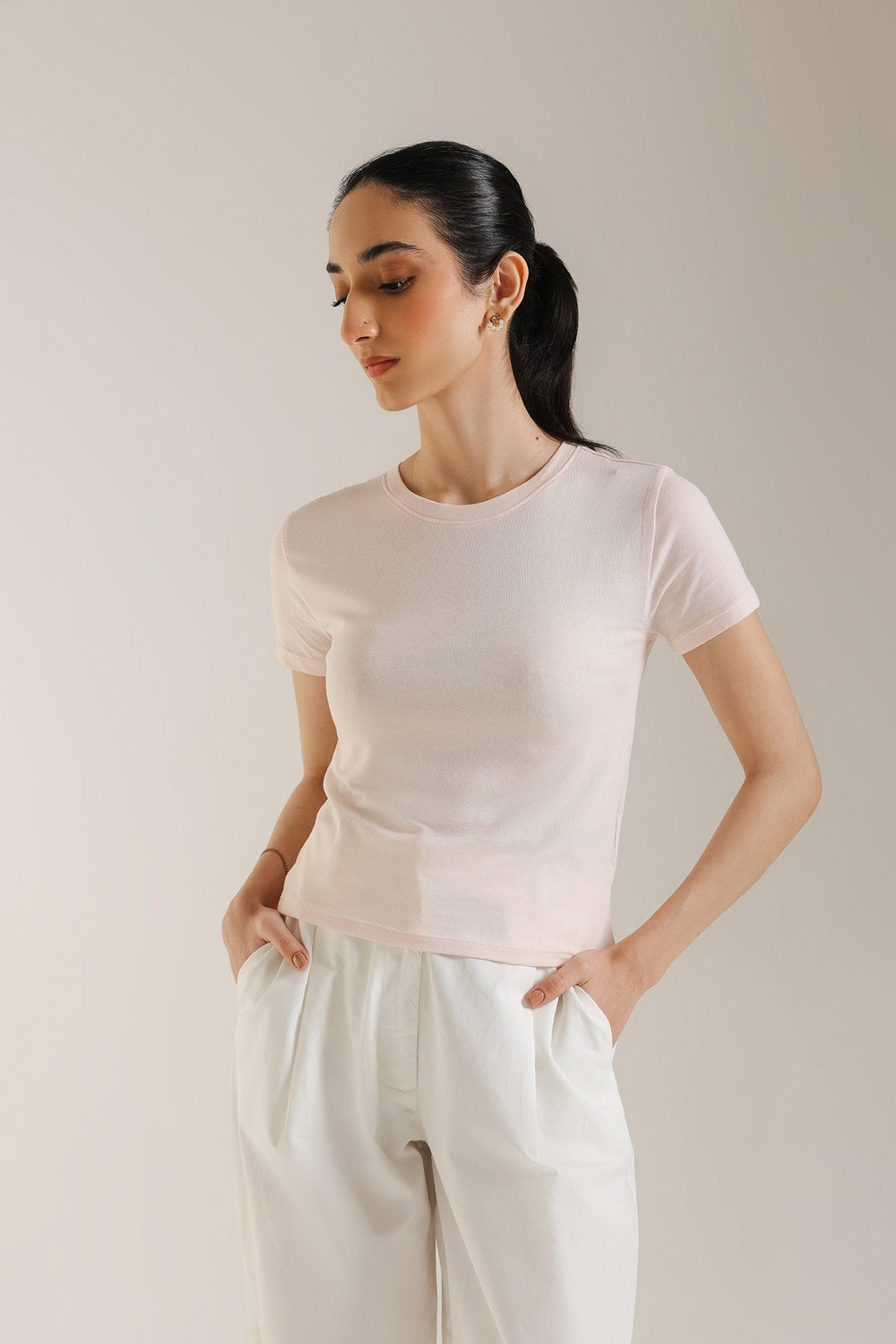 Discover the perfect blend of style and comfort with this versatile pink t-shirt. With its classic short sleeves and crew neckline, this tee is ideal for effortless everyday wear, easily paired with trousers, jeans, or skirts for a chic and comfortable look.